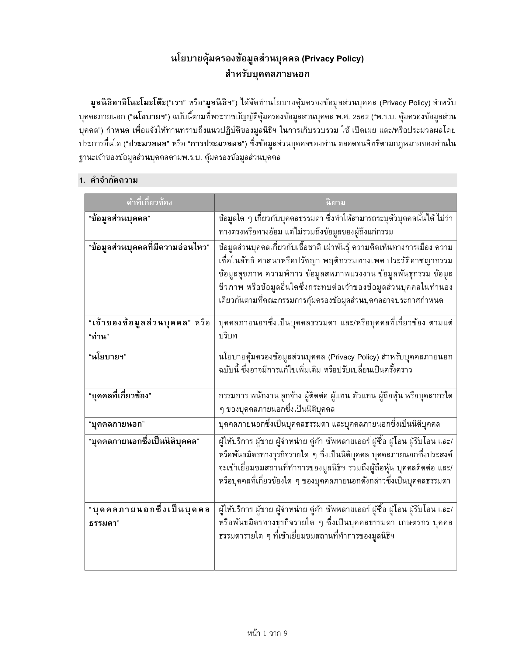นโยบายความเป็นส่วนตัว